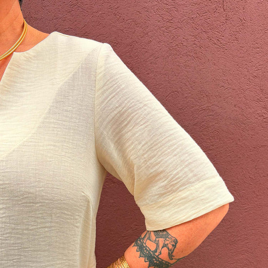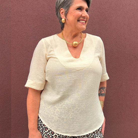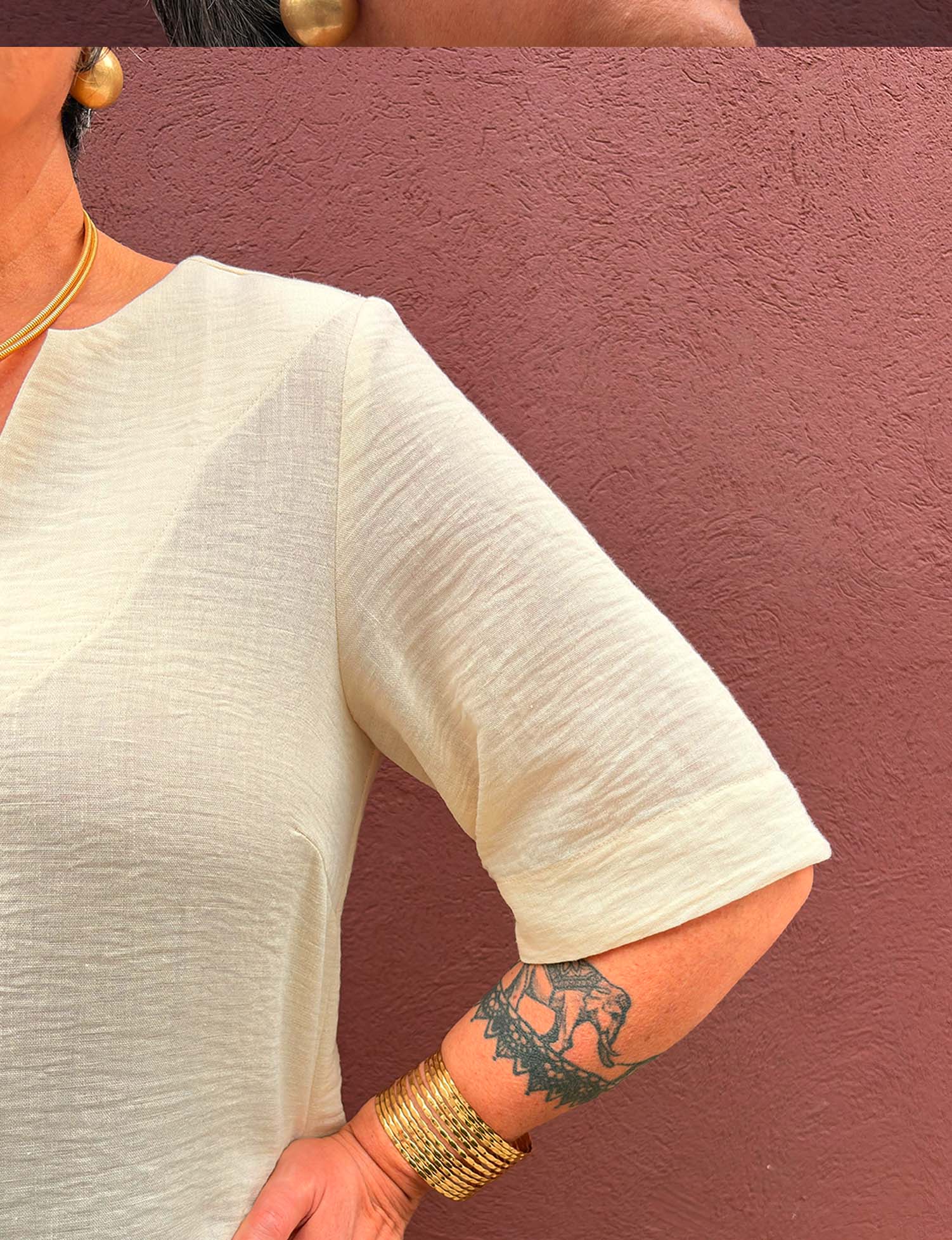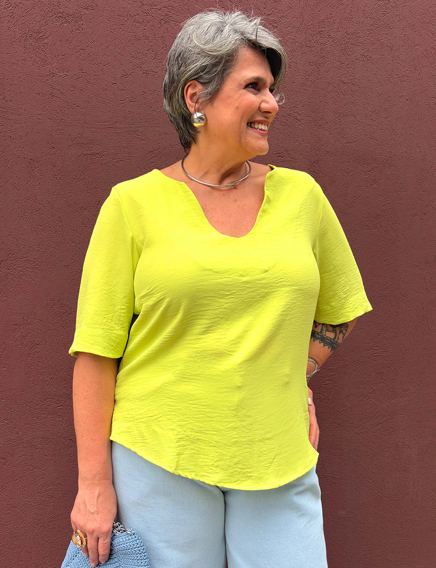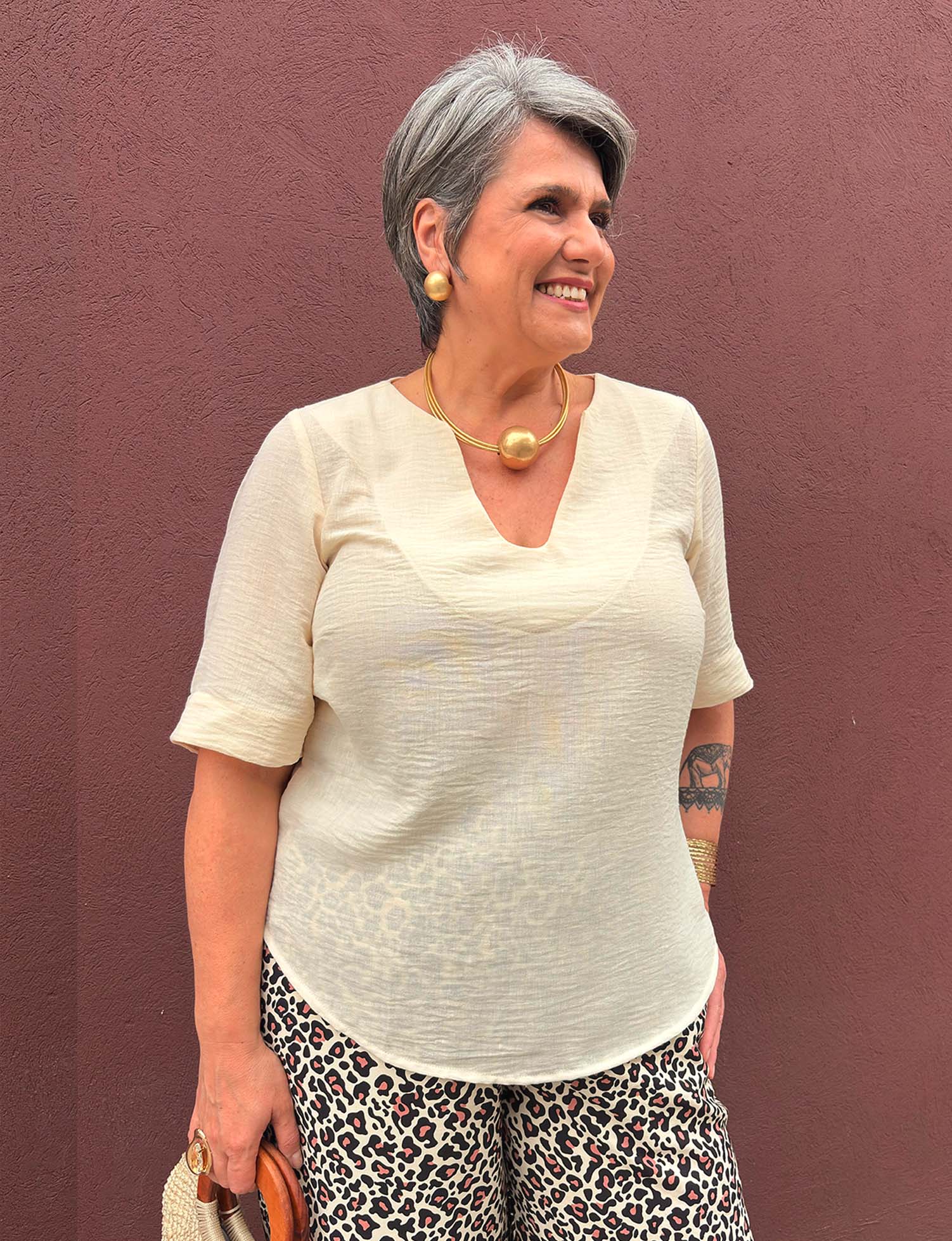 Tecido Leve: Crepe 100%poliéster, trazendo sofisticação a qualquer look.