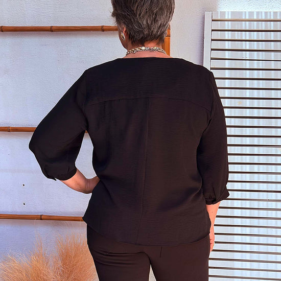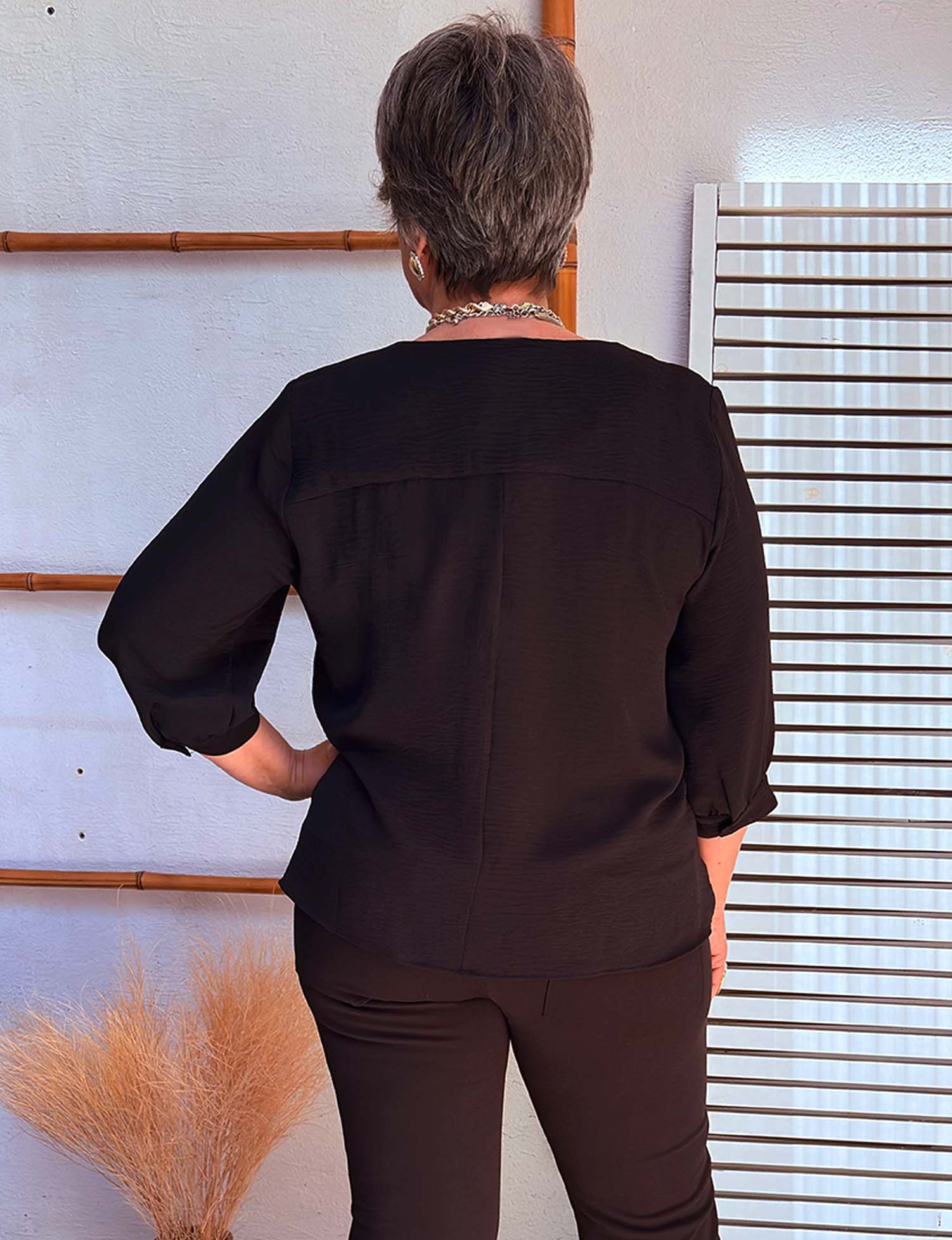 Tecido Leve: Crepe 100%poliéster, trazendo sofisticação a qualquer look.