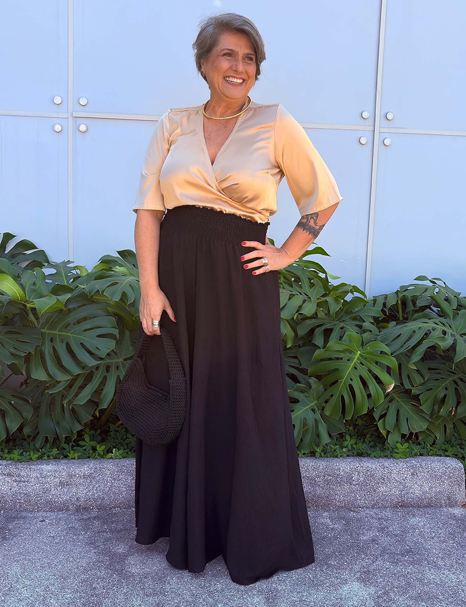 Transita entre Estilos: Perfeita para looks casuais, de trabalho ou produções sofisticadas para festas.