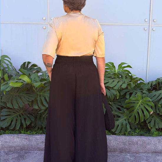 Modelagem Pantalona Ampla: Sofisticação, modernidade e total liberdade de movimentos.