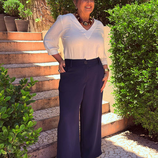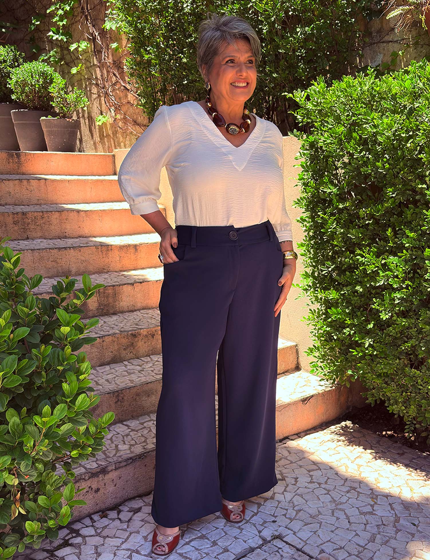 Calça Scuba pantalona Plus Size: Elegância, estrutura e conforto da Madee Moda Plus.
