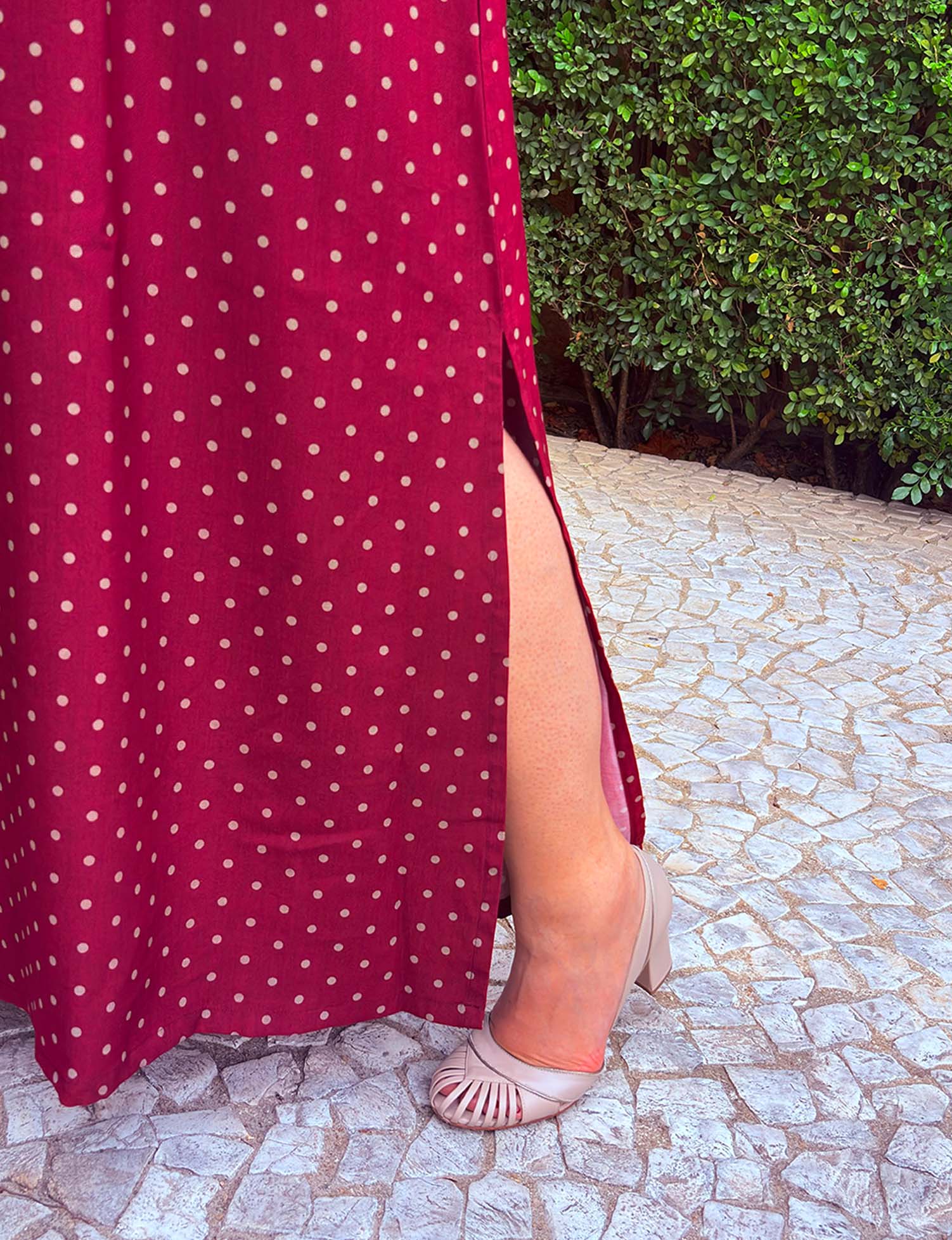 Fendas Laterais Estilosas: Adicionam movimento, charme e fluidez ao caminhar.